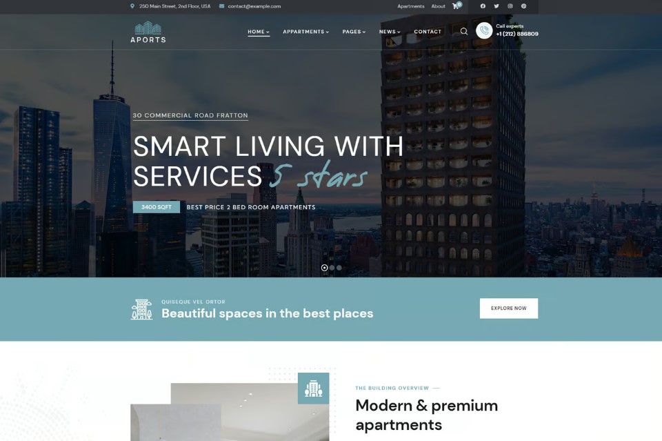 Aports is a sleek and modern Single Property WordPress Theme designed to showcase your property effectively. With customizable layouts and user-friendly features, it makes property listings effortless and appealing. Perfect for real estate agents, owners, or property managers, Aports helps you create a stunning online presence that attracts potential buyers. Embrace simplicity and elegance with Aports!
